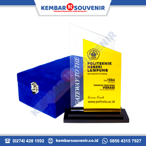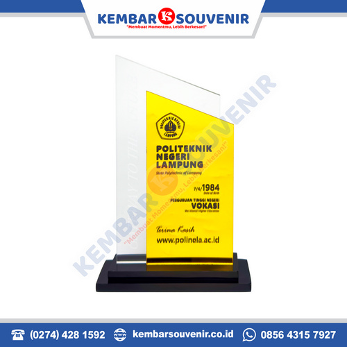 - Bentuk plakat menggunakan bahan akrilik khas, memberikan efek transparan yang elegan.