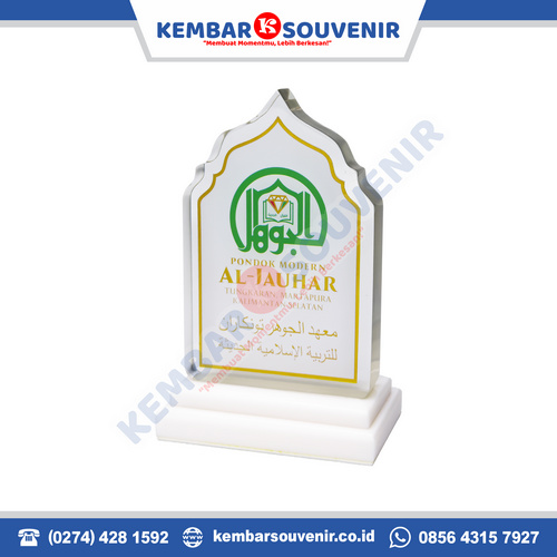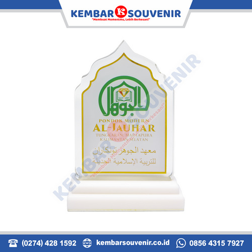 Anda bisa membeli plakat akrilik custom di Kembar Souvenir. Mereka menawarkan layanan pembuatan sesuai keinginan Anda. Desainnya bisa dari minimalis hingga 3D kompleks.