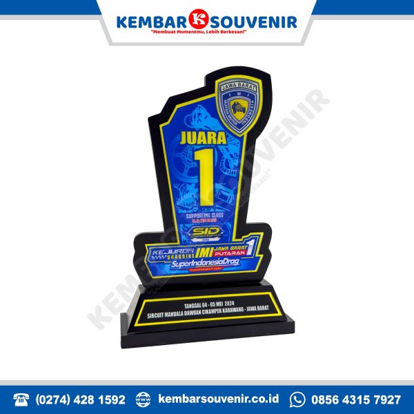 Plakat pada gambar di atas merupakan contoh desain plakat keren yang dirancang khusus sebagai trofi penghargaan juara dalam ajang kompetisi bergengsi. Mengusung gaya modern dan profesional, plakat ini tidak hanya berfungsi sebagai simbol kemenangan, tetapi juga sebagai souvenir prestisius yang membanggakan penerimanya.