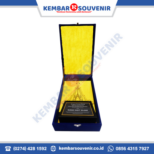Di Kembar Souvenir, saya bisa memesan berbagai jenis plakat. Ini termasuk plakat akrilik, kayu, resin, logam, kristal, fiber, marmer, dan stainless. Semua sesuai dengan kebutuhan saya.