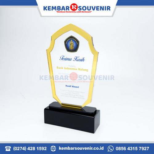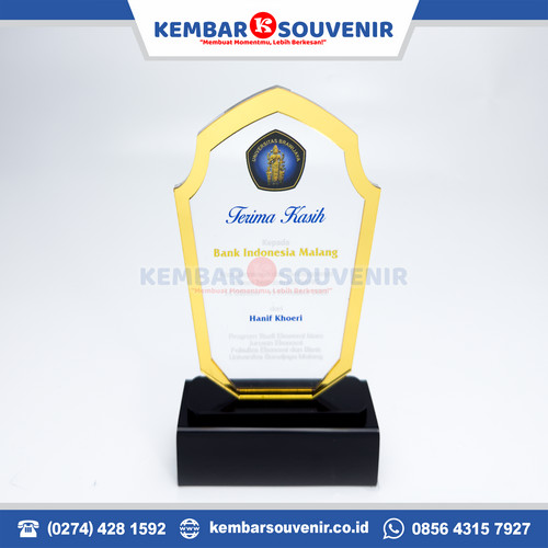 Dasar plakat terbuat dari akrilik hitam solid berbentuk persegi panjang yang kokoh, menambah stabilitas dan kesan eksklusif pada tampilan keseluruhan.