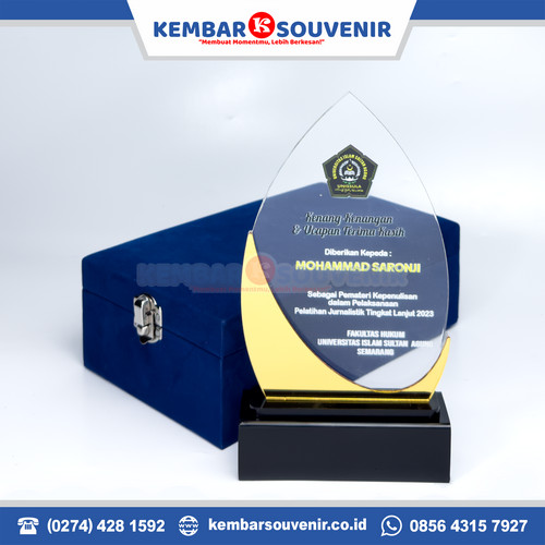 Di Kembar Souvenir, Anda bisa menemukan aplikasi plakat akrilik kayu dengan banyak desain dan harga terjangkau. Plakat ini membuat acara Anda lebih spesial dan berkesan.