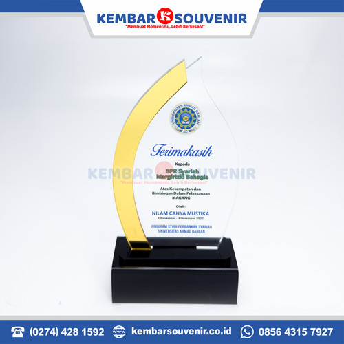 Selain versi fullset seperti contoh di atas, Kembar Souvenir juga menyediakan plakat akrilik polos tanpa tulisan yang siap dicustom sesuai kebutuhan Anda.
