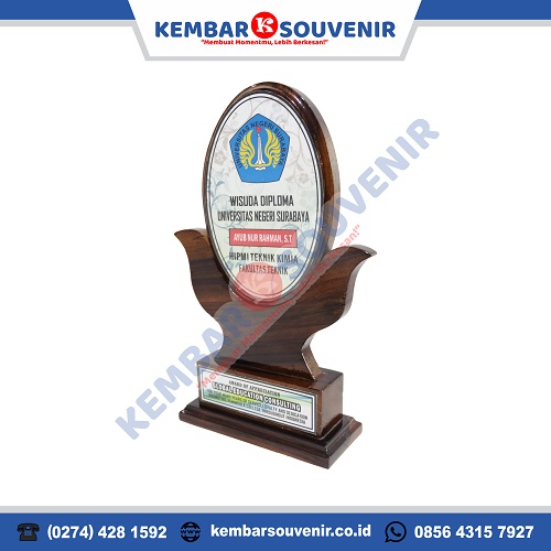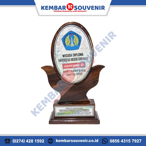 Plakat kayu memberikan kesan elegan dan alami. Kayu premium yang digunakan membuatnya tahan lama. Ini cocok untuk penghargaan jangka panjang, menciptakan kenangan berharga.